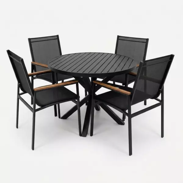 Descubra o exclusivo Conjunto Búzios, projetado para transformar a sua área externa num espaço de elegância e comodidade. Este conjunto é composto por uma requintada Mesa de 1.0 de diâmetro com tampo ripado e quatro Cadeiras Búzios, oferecendo a máxima funcionalidade e estilo.