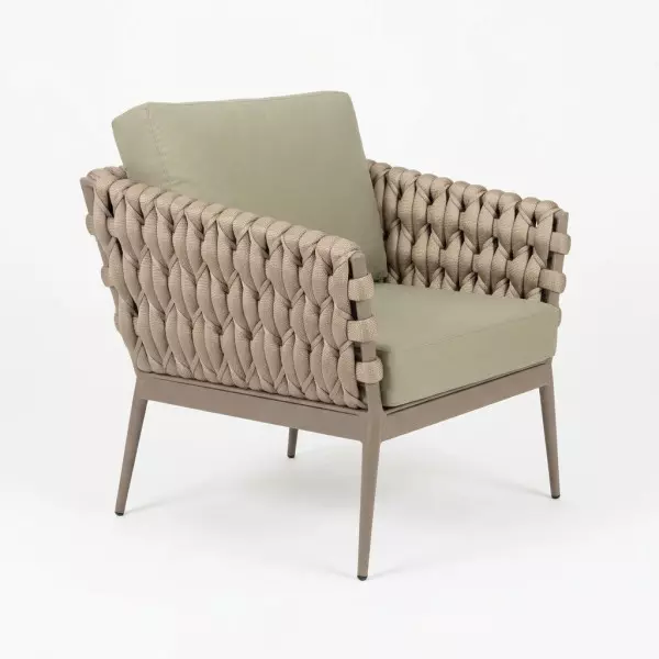 A Poltrona em Tricô Náutico combina sofisticação, conforto e durabilidade trazendo uma atmosfera aconchegante ao seu ambiente. Com uma estrutura em alumínio, madeira cumaru e tecido impermeável, complementada por uma pintura eletrostática, nossa poltrona é um investimento em qualidade e estilo.